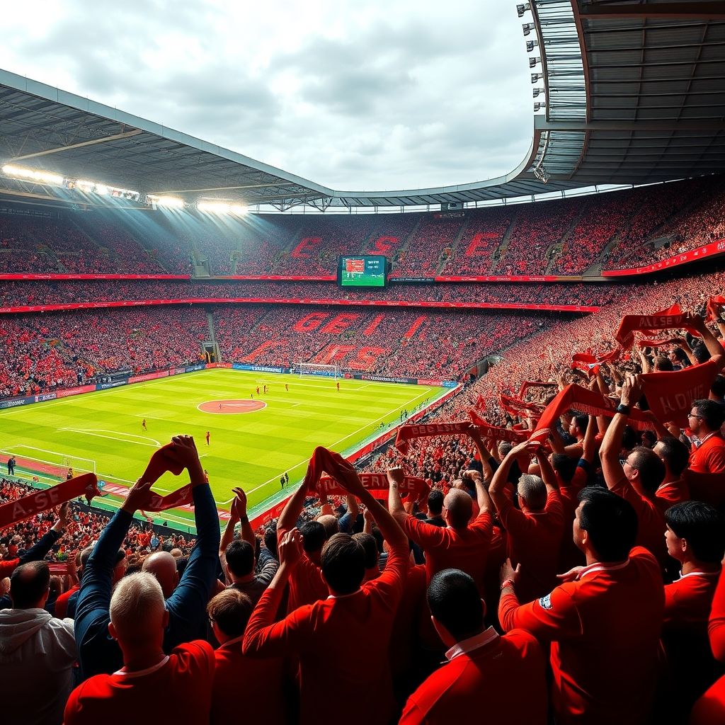 在利物浦的主场安菲尔德,每一场比赛都被视为一场盛大的节日盛典。球迷们会提前到达球场,身着红色球衣,聚集在球场四周,充满期待和激情。在比赛开始前,他们会齐声高唱《You'llNeverWalkAlone》(你永不独行),这一经典的球迷歌曲已经成为利物浦的象征。歌声回荡在整个球场,响彻云霄,仿佛是一种无声的誓言,告诉球队无论何时何地,他们的支持永不离弃。这首歌的旋律和歌词,传达着无尽的力量与鼓励,极大地激励了球员们投入到比赛中去。